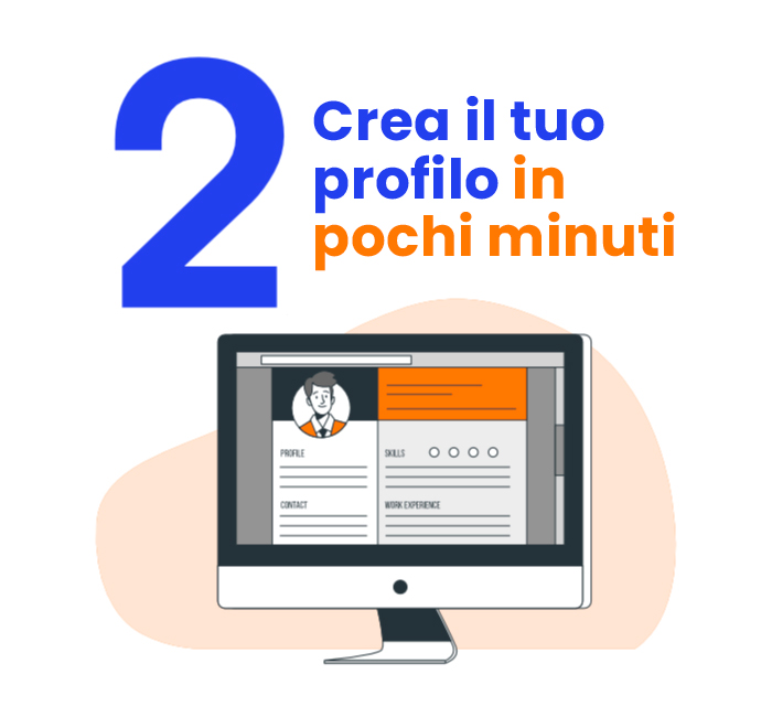 Il sistema poi ti aiuterà a creare il tuo profilo professionale passo dopo passo, senza bisogno di caricare un curriculum.
